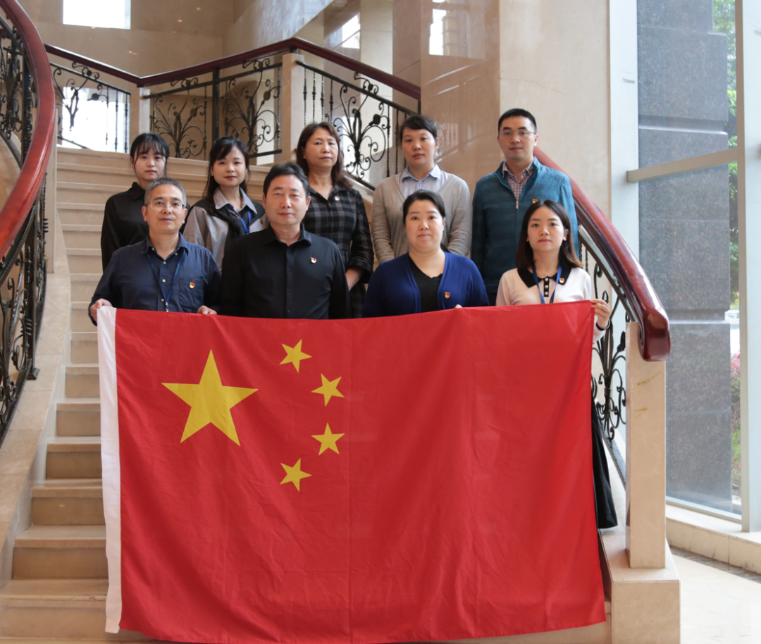 學(xué)習(xí)后,全體黨員與國旗合影,以錚錚誓言表達(dá)對黨和祖國的熱愛與祝福。