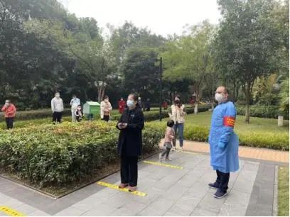 7時(shí)許,尹鵬飛熟練穿好防護(hù)服,戴好口罩和手套,開始仔細(xì)消毒。一身行頭齊備后,他正式開始了上午的工作:在小區(qū)內(nèi)布置檢測(cè)點(diǎn)位、確定安全距離、安排志愿者、維持現(xiàn)場(chǎng)秩序;在疫情監(jiān)測(cè)卡點(diǎn),勸返出入?yún)^(qū)人員,對(duì)確需入?yún)^(qū)的人員告知“人員只進(jìn)不出的”管控措施,同時(shí)做好詢問來去、記錄時(shí)間、測(cè)量體溫等各項(xiàng)信息登記;一遍又一遍地給居民重復(fù)著“保持一米距離”“做完核酸不要逗留馬上回家”的提醒……他的動(dòng)作有條不紊、回答耐心細(xì)致。一整套流程下來,已是下午2點(diǎn)。