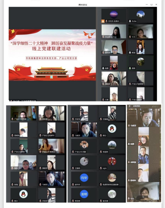 疫情居家辦公期間,為深學細悟黨的二十大精神,豐富支部學習教育形式,加強支部間的溝通交流,凝聚戰(zhàn)“疫”合力,近日,集團審法財務(wù)黨支部和產(chǎn)業(yè)公司黨支部聯(lián)合組織開展“深學細悟二十大精神 踔厲奮發(fā)凝聚戰(zhàn)疫力量”線上黨建聯(lián)建活動?;顒佑蓪彿ㄘ攧?wù)黨支部書記楊溢主持,兩個支部的黨員共計37人參加。